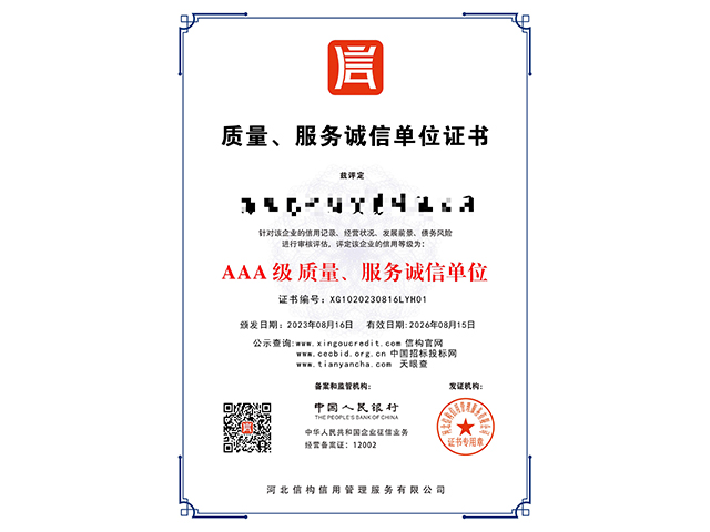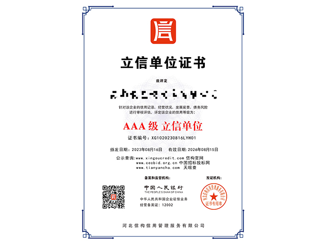 成功為超過(guò)56000個(gè)客戶完成AAA企業(yè)信用等級(jí)認(rèn)證